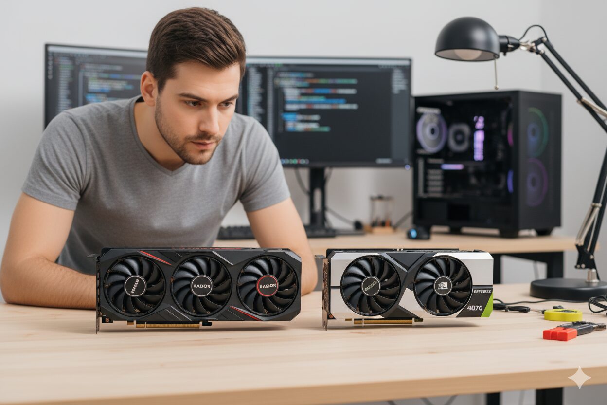 WQHD解像度でのゲーミングが新たな標準となる2025年、多くのPCゲーマーが最高の体験を求めてグラフィックボードの選定に情熱を注いでいます。その中心で繰り広げられる熱い戦いがRX 7800XTとRTX 4070のどっちを選ぶかという究極の選択です。AMDが誇る圧倒的なラスタライゼーション性能と16GBの大容量VRAMか、それともNVIDIAの先進的なDLSS 3と優れた電力効率か。このRX 7800XTとRTX 4070のどっちを選ぶかという決断はあなたのゲーミングPCの未来を左右する重要な分岐点となります。