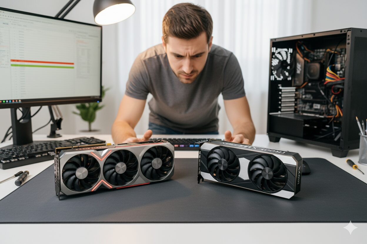 2025年のPCゲーム環境を最大限に楽しむため多くのゲーマーがグラフィックボードの選択に頭を悩ませています。特に激戦区であるミドルレンジ市場の中心にいる7700XTと4060Tiのどっちを選ぶべきかという問題は、性能と価格、そして将来性を見据えた上での重要な決断です。NVIDIAのDLSSやレイトレーシングといった先進技術か、それともAMDの優れた純粋な描画性能と大容量VRAMか。この7700XTと4060Tiのどっちを選ぶかという選択はあなたのプレイスタイルそのものを映し出す鏡と言えるでしょう。