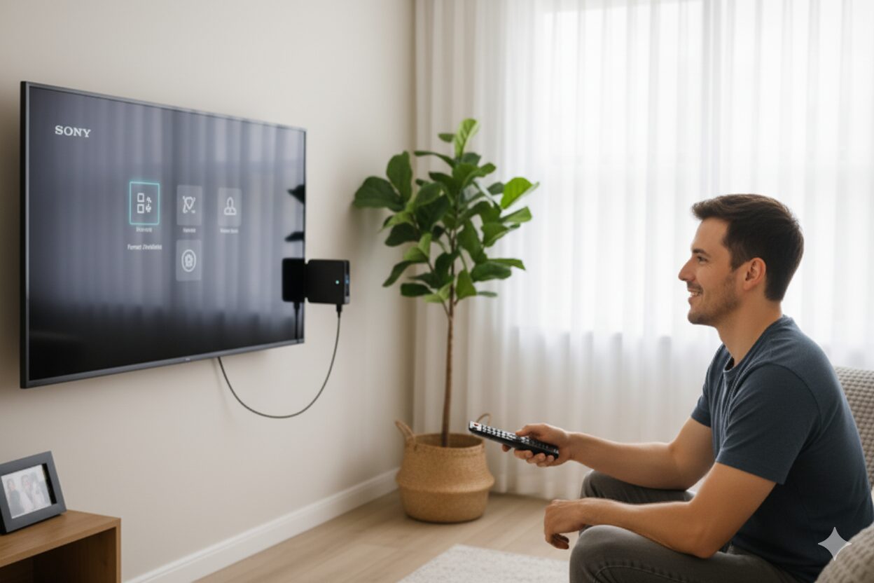 ブラビアへの外付けHDDの接続方法は驚くほど簡単です。まず購入した外付けHDDを、ブラビアの録画用USB端子にUSBケーブルで接続します。バスパワー(USBからの給電)で動作しないセルフパワータイプのHDDの場合はACアダプターをコンセントに接続することも忘れないでください。正しく接続されると多くの場合ブラビアの画面にメッセージが表示されます。