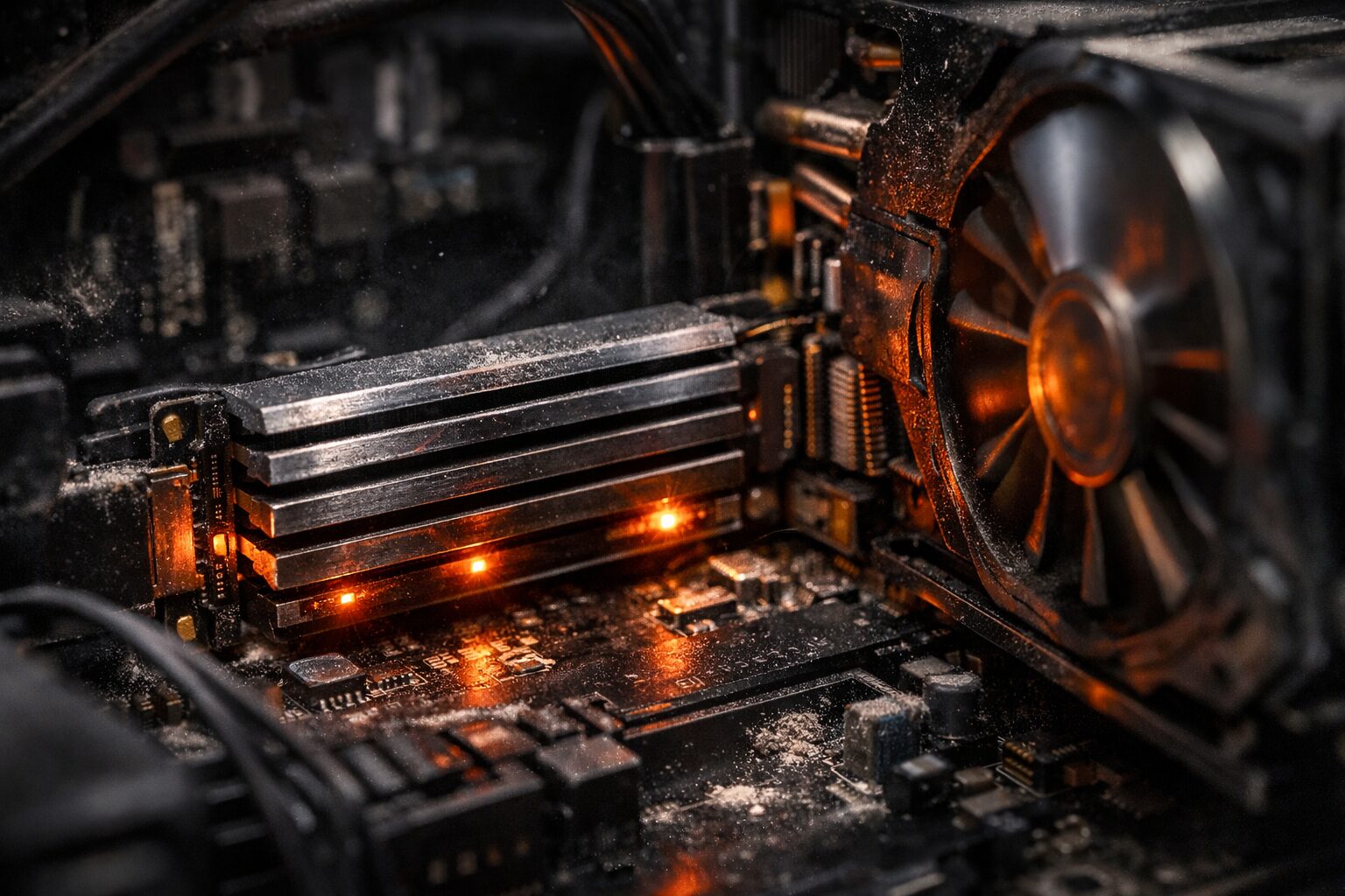 むしろ現実的な脅威となるのは、熱によるダメージやコントローラーチップの突然死です。SSDは高速にデータを処理する際、かなりの熱を発します。特に高性能なNVMe SSDの場合、適切な冷却が行われないと「サーマルスロットリング」が発生し、最悪の場合は基板上の部品が熱で破損してしまいます。また、SSDの頭脳であるコントローラーが電気的なショックやファームウェアの不具合で停止すると、予兆なくデータにアクセスできなくなる「即死」状態に陥ることもあります。これを防ぐには、冷却対策と信頼できるブランド選びが重要です。