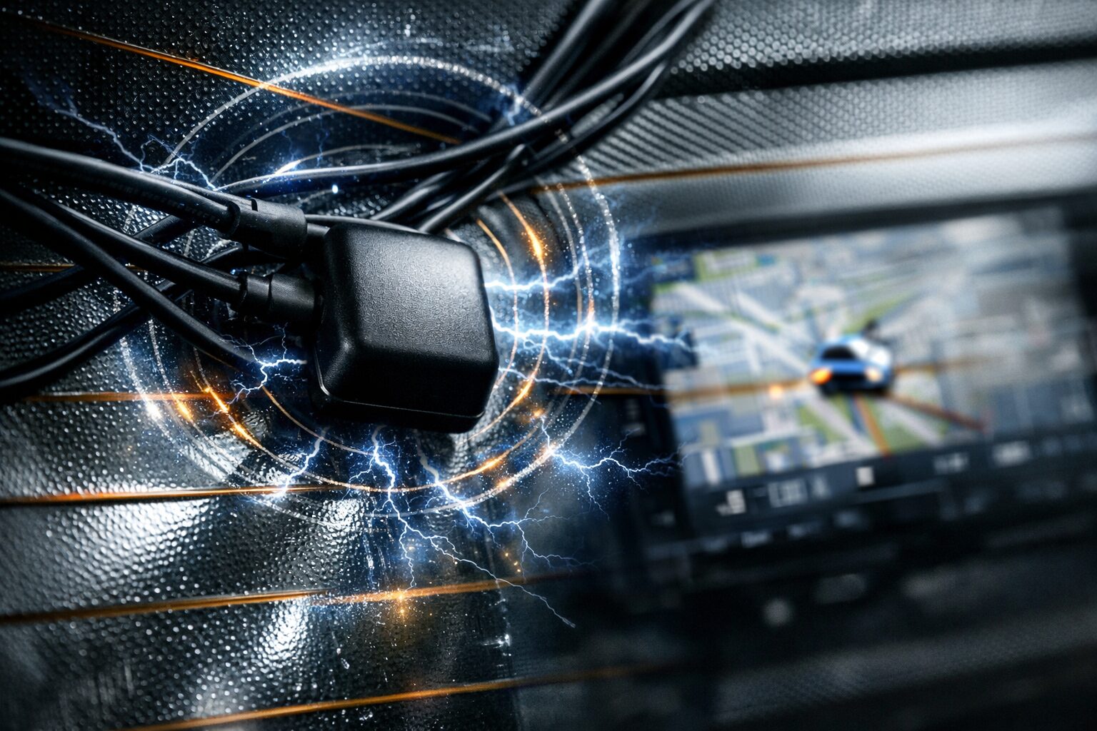 まず、最も多いのが「電波干渉」です。後付けしたドライブレコーダーやレーダー探知機、あるいはFMトランスミッターなどがノイズを発し、GPSの受信を妨害しているケースです。これらの機器をGPSアンテナの近く(30cm以内など)に設置している場合、位置を離すだけで改善することがあります。