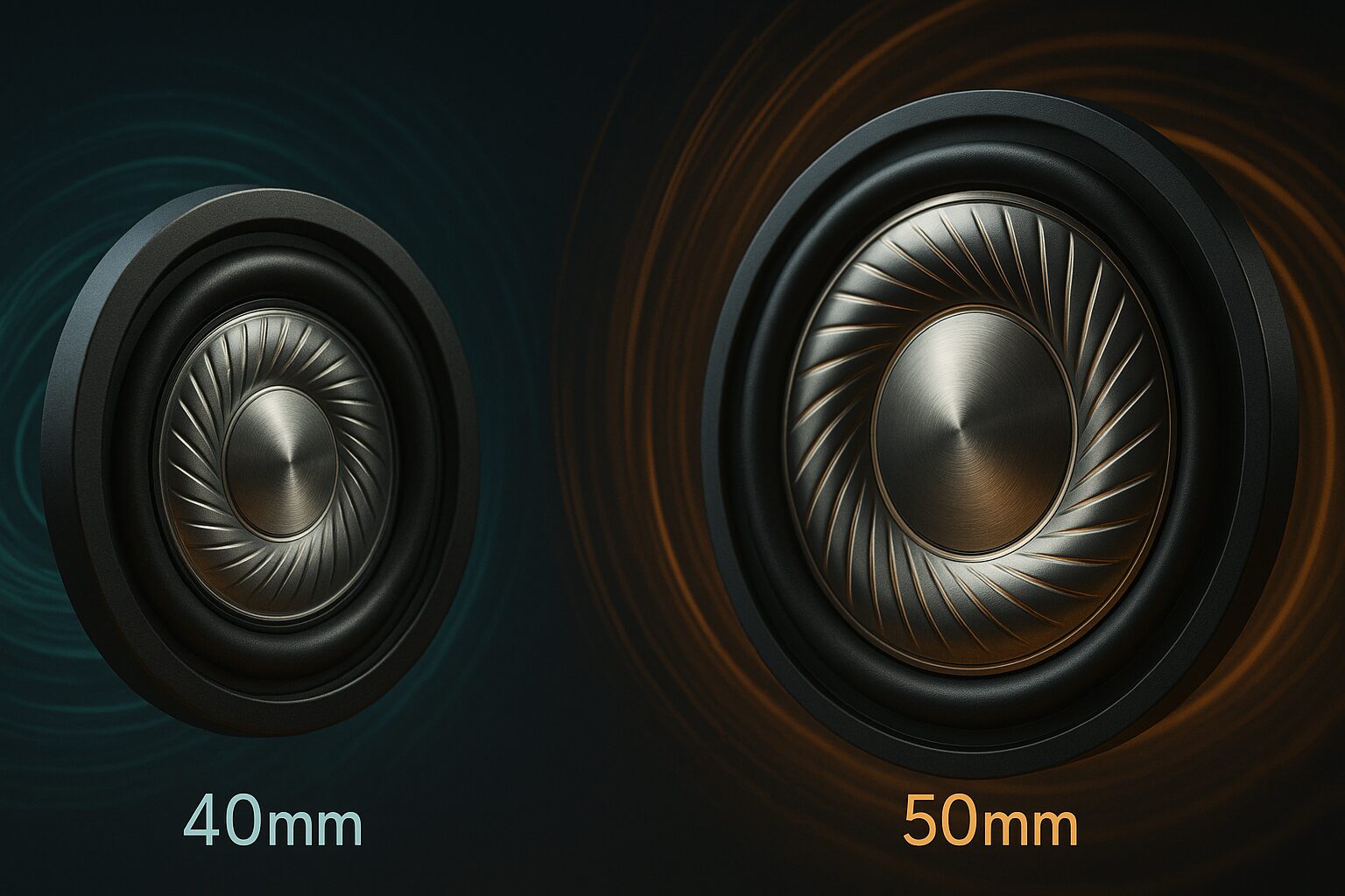 - 50mmと40mmの違いは、主に「低音域の表現力」と「音場の広さ」に現れやすいです