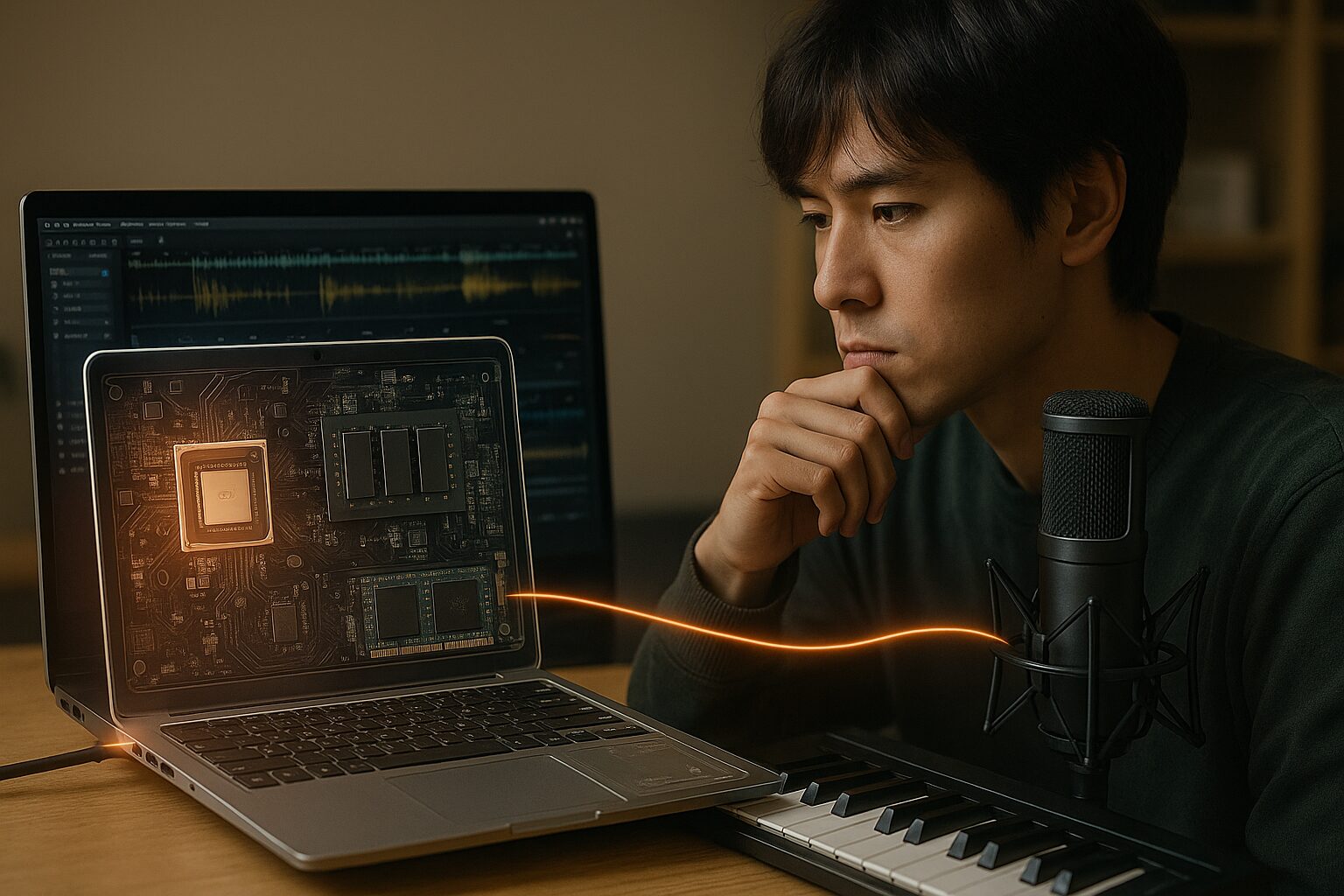 また、デスクトップPCと比べて、CPUの性能が同じ名前(例:Core i7)でも、ノートPC用は少し抑えられていること、そして後からの拡張(メモリ増設など)が難しいことも考慮すべき点です。とはいえ、最近のCore UltraプロセッサやApple Mチップ搭載機は、これらの弱点を克服しつつあり、ノートPCでのボカロ作曲はますます現実的な選択となっています。