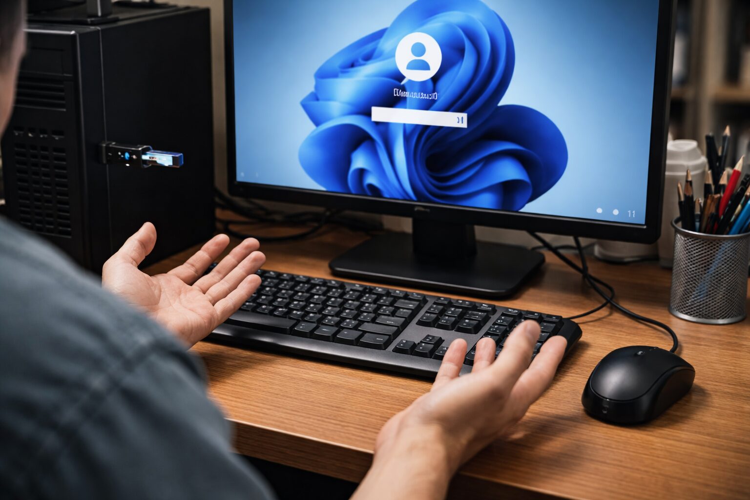 Windowsの起動までは進むものの、ログイン画面になった途端にマウスもキーボードも反応しなくなり、パスワードが打てずに詰んでしまうことがあります。これはWindowsのシステムファイル読み込み時に入力デバイスの認識に失敗している状態です。この状況でログインするには、一時的な回避策として「スクリーンキーボード」の使用を試みる価値があります。もしマウスだけが動くなら、ログイン画面右下の「アクセシビリティ(人の形をしたアイコン)」をクリックし、「スクリーンキーボード」をオンにしてください。