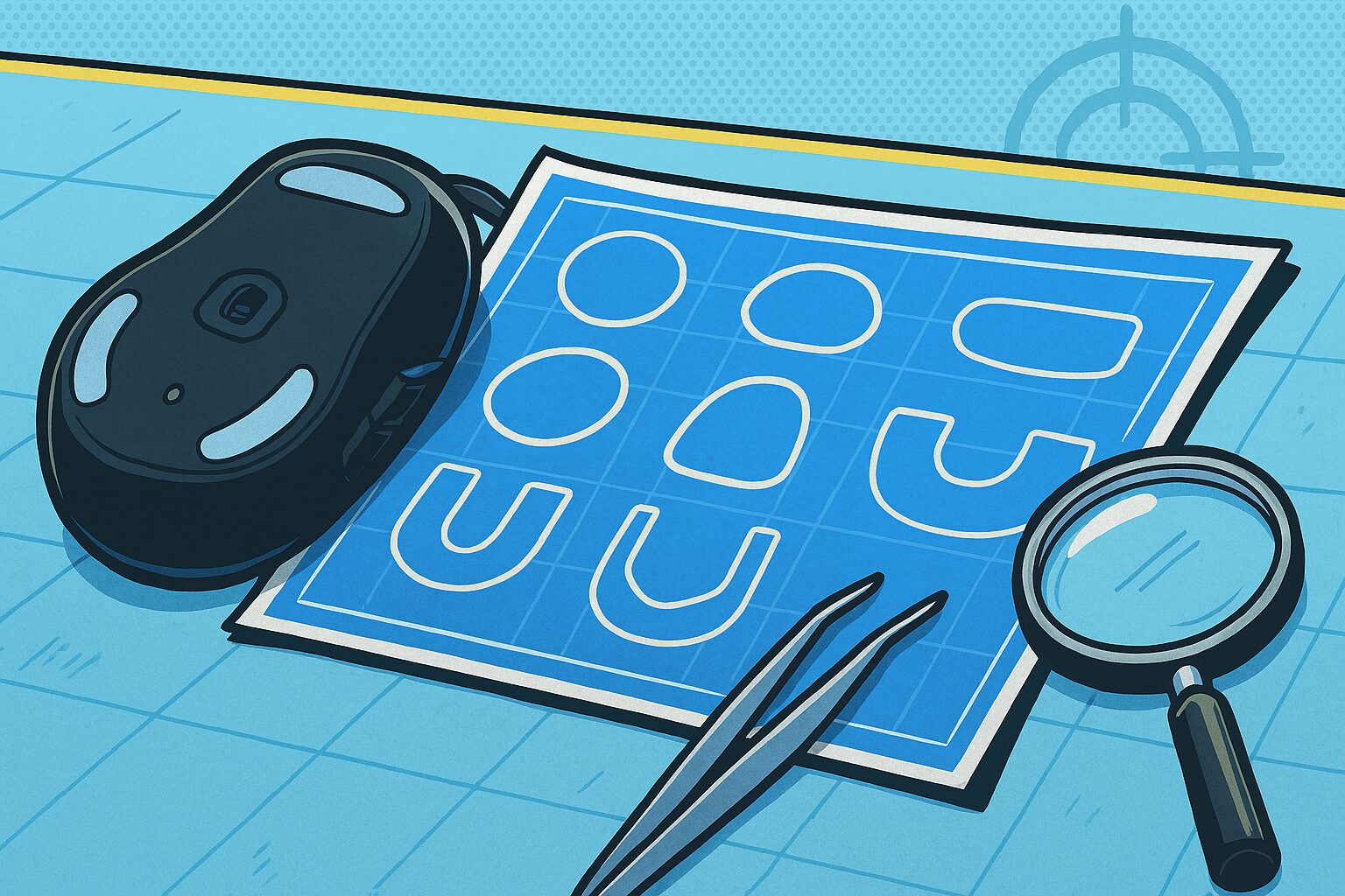 多すぎるラバーは逆効果です。微細なズレが生むガリつきで、クロスヘアが直前に跳ねます。目安は二から三、最大でも四です。位置はマウスの重心とクリック時の指圧で変わるため、シートを仮置きしてから本貼りします。仮置きで効果が薄いと感じたら、厚みを下げるか面積を小さくして、止めはパッド側で補う設計に切り替えます。