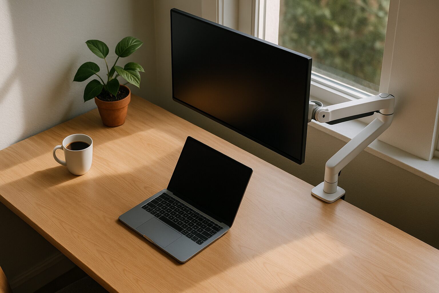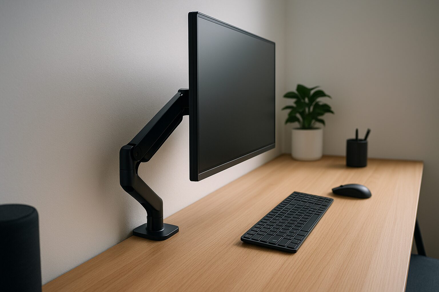 モニターが、まるで宙に浮いているかのように、壁際にすっきりと収まり、広々と生まれ変わった、あなたのデスク。その快適な空間で、より創造的に、そしてより健康的に、作業に打ち込む、あなた自身の姿。モニターアームを壁ギリギリに設置するという、ほんの少しの工夫が、あなたの毎日の質を、劇的に向上させてくれるはずです。