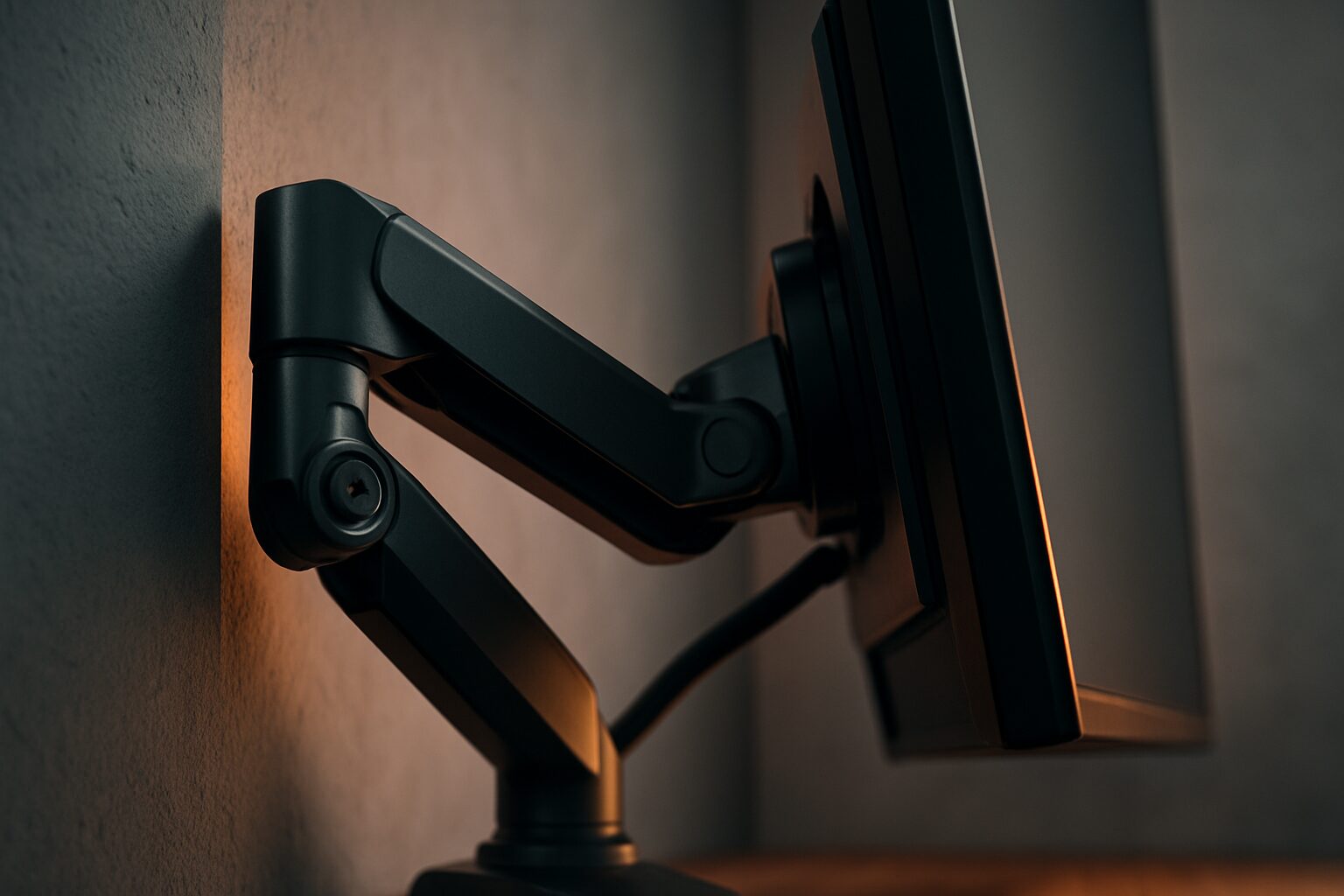 デスクの奥行きが足りない問題を、根本から解決する究極の方法。それが、モニターアームをデスクではなく、壁そのものに取り付けてしまう、壁付けタイプのモニターアームです。デスクの設置場所に一切依存しないため、モニターアーム 壁寄せという次元を超え、まさに壁ギリギリ、意のままの場所にモニターを配置できます。