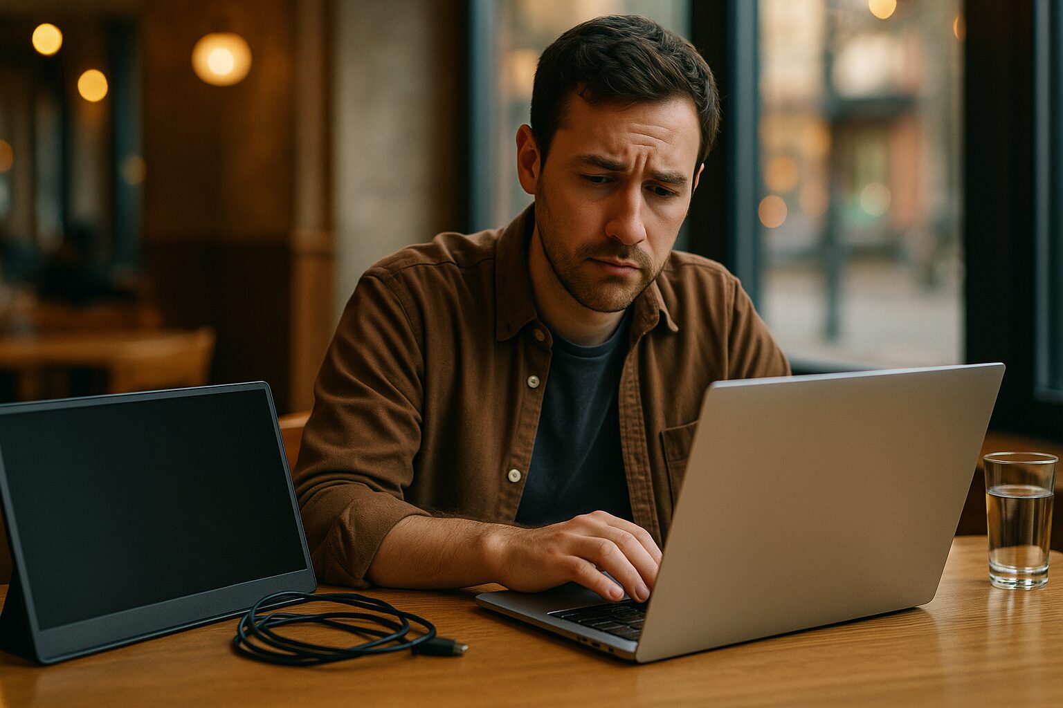 設置の手間:カフェなどの狭いテーブルでは、ノートパソコンとモバイルモニターを並べて置くスペースがない場合があります。毎回設置・撤収するのが面倒だと感じる人もいます。