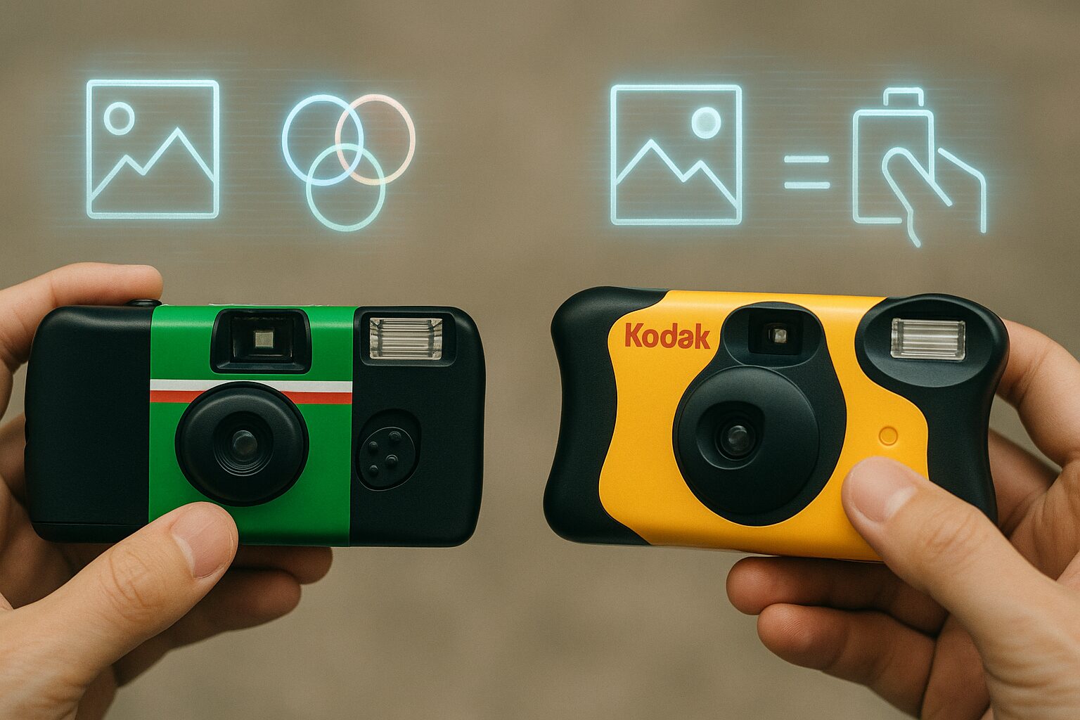「写ルンです」と「コダック FunSaver」、どっちがいいか。その答えは、あなたが「どんな雰囲気の写真を撮りたいか」で決まります。最大の違いは「色味」です。