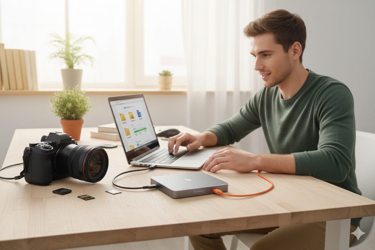 写真保存はHDDとSSDのどちらがいいですかの答えを実運用で支えるのは、手順の固定化です。本機を原本のミラー先として運用し、別途ポータブルSSDを作業用に。NASとHDDどっちがいいの判断に迷ったら、まずはこの二段運用で十分な場面が多いはずです。