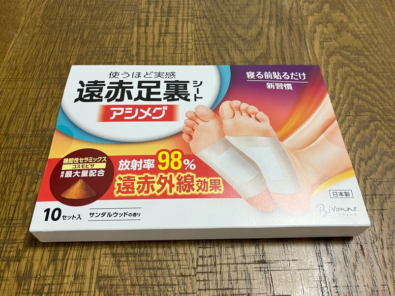 今回試してみるのは、数々のメディアでも紹介され話題となっている「遠赤外線足裏シートアシメグ