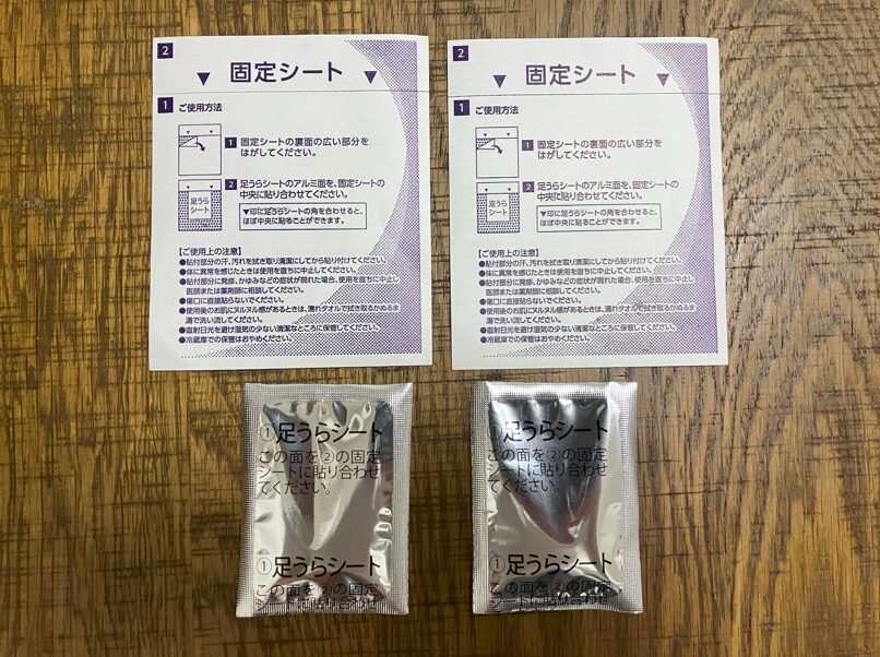 粘着シートは医療用にも使われる素材だそうで、肌に優しそうな印象を受けました。剥がしやすいように工夫もされており、使う人のことをよく考えて作られているなと感じます。今回は、特に重だるさを感じやすい土踏まずを中心に貼ってみることにしました。これからどんな体験が待っているのか、期待が高まります。