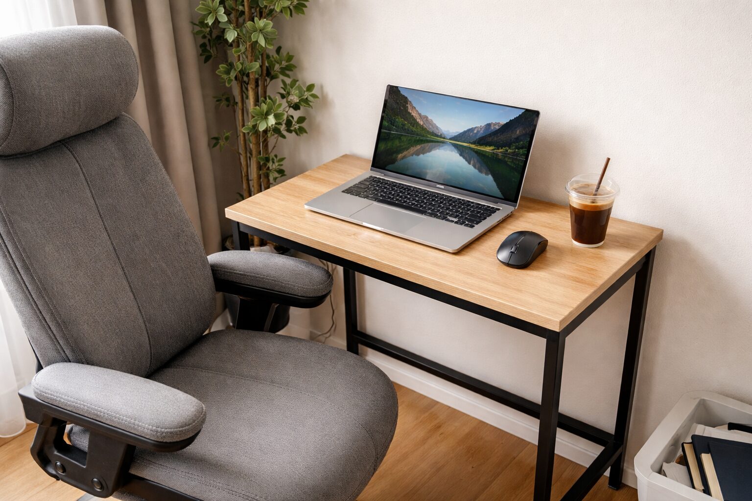 さらにコンパクトな「幅60cm」のデスクも存在しますが、これは「狭い」と断言できます。幅60cmは、ノートPCを置いたら左右にマウスを動かすスペースがほとんど残らないレベルです。あくまで「PCを置く台」としての機能に限定され、書き物などの作業は困難です。