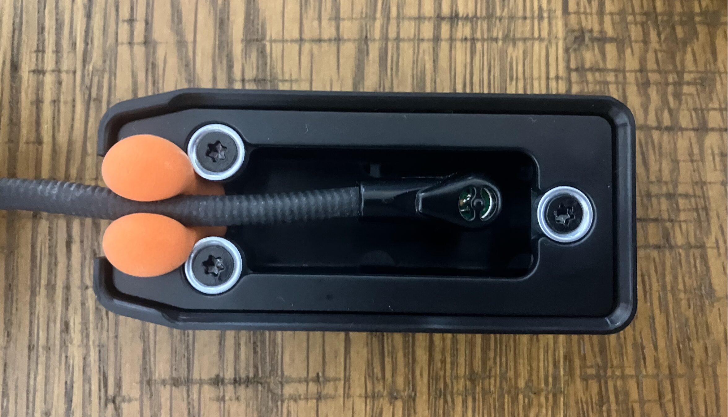 ※大き目のヘッドセットの場合、マイクポートのオレンジのスポンジ部分に入らない可能性があるため注意してください。