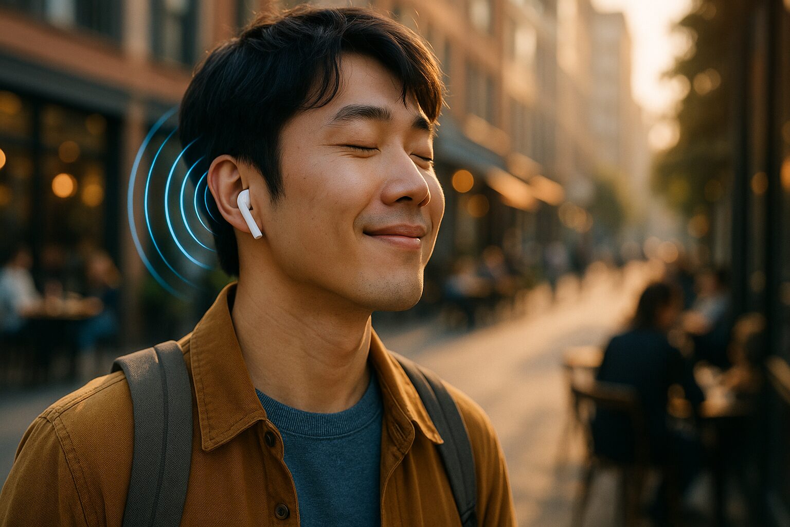 USB-C端子に対応した最新モデルなら、iPhone 15以降と同じケーブルで充電可能。荷物を減らせるのも大きなメリットです。「適応型オーディオ」機能により、周囲の状況に合わせて音量を自動調整してくれるので、街歩きも快適そのもの。