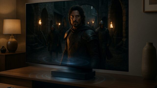 この方法の最大のメリットは、スピーカーがモニターと一体化し、モニターを動かせばスピーカーも一緒に追従してくる点です。モニターの高さや角度を変えるたびに、スピーカーの位置を調整し直す必要がありません。常に、モニターとスピーカーが理想的な位置関係を保ち続けるため、快適な視聴環境が崩れることがないのです。サウンドバーのような横長のスピーカーを、モニターの上や下に取り付けたい場合にも、このVESAマウントを利用した製品が最適。モニター周りを、機能的なサウンドシステムへと進化させます。