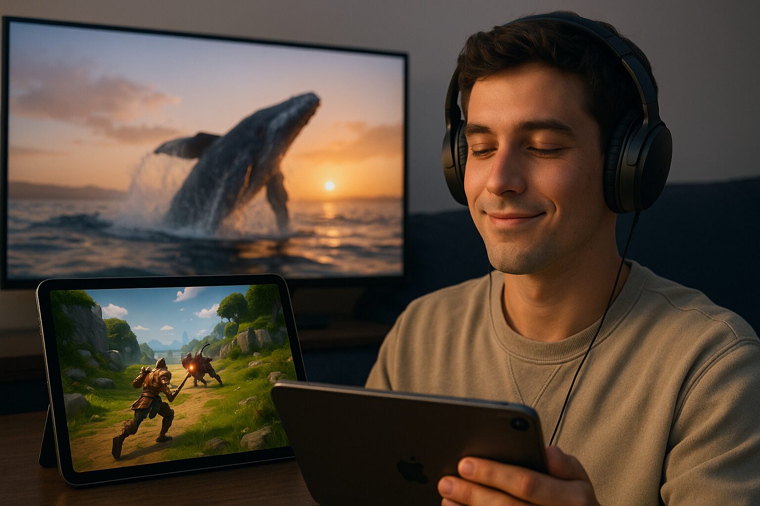 さらに、強力なノイズキャンセリング機能が、ゲームへの没入感を最大限に高めてくれます。iPadで2画面表示できる機種のポテンシャルを「音」の面からフルに引き出す、最後のワンピースです。