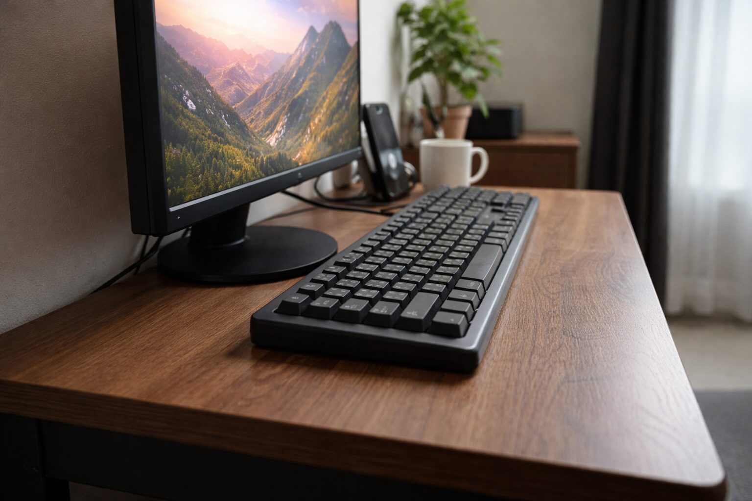 奥行き60cmのデスクにモニターを置く場合、快適に使える限界サイズは「24インチ」程度と考えましょう。24インチモニターであれば、適切な視聴距離(約50〜60cm)を確保しつつ、キーボードとマウスを操作するスペースも十分に取れます。しかし、27インチ以上のモニターになると、画面が大きくなる分、視界に収めるために距離を取る必要が出てきます。